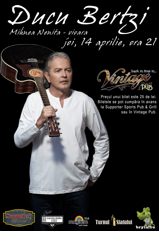 Dragilor, a trecut ceva vreme de când n-am mai găzduit un concurs. A venit vremea pentru următorul. Partenerul, deja tradițional, Vintage Pub, scoate la bătaie două bilete la concertul Ducu Bertzi ce va avea loc joia viitoare, în 14 aprilie, de la ora 21. Presupun că nu e cazul să înșir aici o lungă polologhie despre cine este Ducu Bertzi, ce fel de viers cântă și să utilizez date statistice. E unul dintre cântăreții români pe care e imposibil să nu-l știi. Prin urmare, doi dintre comentatorii de la acest articol vor avea ocazia să îl vadă live și să economisească cei 25 de lei care, altfel, i-ar fi dat pe bilet. Iar cei care nu vor avea noroc, pot să cumpere biletele de la Supporter, pe bulevardul Victoriei. O singură rugăminte: adresa de mail să fie validă, ca joi dimineața să vă pot anunța pe câștigători. Băftoc cu carul!