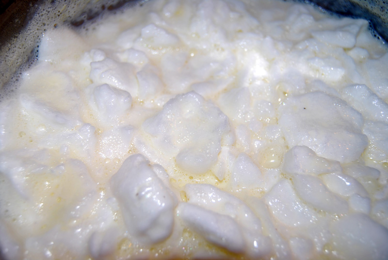 Visez de ceva vreme la aÅŸa ceva. Cam de când au început să circule mesajele alea cu „eÅŸti de gaÅŸcă dacă… ai mâncat gumă Turbo, ai fumat BT, ai jucat gropiță”, etc. Copilăria mea culinară este perfect întipărită în memorie. DeÅŸi mă lasă în alte domenii, cum ar fi numele persoanelor pe care le-am cunoscut de-a lungul vremii, mintea ține foooarte bine minte ce păpam io când eram mic. Probabil papilele sunt mai de treabă decât creieraÅŸul. Åži amintirile curg. Despre ou în pâine, ou moale, gălbenuÅŸul frecat cu zahăr care-l haleam la desert, gomboții cu prune. Chestii care se puteau face din nimic, pentru că la vremea aceea cam asta se găsea, mai nimic. Iar acum, văd cu surprindere câte minuni se pot face din niÅŸte ouă ÅŸi niÅŸte făină. Prăjitura pe care am testat-o de Crăciun la Deva, de exemplu, pe care o făcea străbunica mea, un deliciu, nu alta, făcut doar din ouă ÅŸi făină. Gomboții i-am testat, au ieÅŸit perfect, poate o țâră cam tari, aÅŸa, ca la prima încercare. Prin urmare, trebuia să vină ÅŸi rândul laptelui de pasăre.